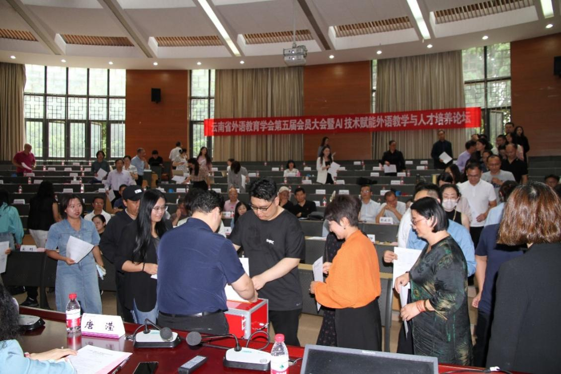 6月7日,云南省外语教育学会第五届会员大会暨“AI技术赋能外语教学与人才培养论坛”在fun88官网召开。本次大会由云南省外语教育学会、云南高校外语教学研究会和云南省翻译工作者协会共同主办,FUN乐天使官方网站外国语学院承办,外语教学与研究出版社、科大讯飞股份有限公司和云南智泉翻译有限公司提供支持。云南省民政厅社会组织管理局、云南省社会科学界联合会学会部,FUN乐天使官方网站社科办、外国语学院领导出席了会议。来自全省各大中专院校70多个理事单位代表、中小学名师代表及企业界代表100多人参加了大会。