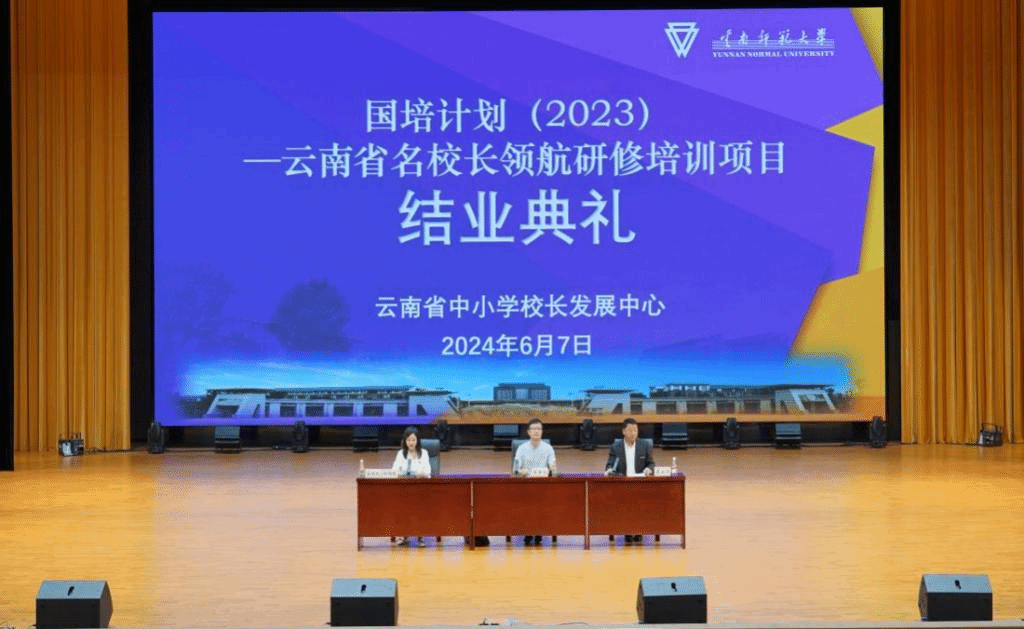 6月7日,国培计划(2023)-云南省名校长(初中、幼儿园)领航研修培训项目结业典礼在FUN乐天使官方网站呈贡校区多功能实训中心举行。云南教育干部培训中心主任王世波、副主任翟波宇,500余名研修学员及云南省中小学校长发展中心全体工作人员参加结业典礼。典礼由项目办教学部主任邓阿岚主持。