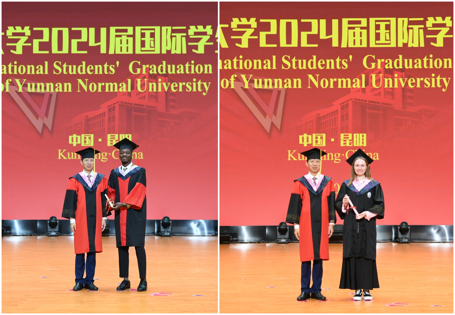 校党委书记张祖武在致辞中对毕业学生提出期望:一是希望同学们争做文明交流互鉴的开拓者。把推动文化交流、文明互鉴的理想付诸实践,用自己的亲身经历和行动,为构建更加开放、包容、互相尊重全球社会贡献力量;二是希望同学们争做民心相亲相通的践行者。把学习了解到的中国优秀传统文化,感知到的中国经济社会发展的巨大成就以及同学们的真实体会介绍给更多的人,为促进中外民心相亲相通发挥积极作用;三是希望同学们争做志存高远、担当作为的奋进者。始终秉承云南师大“刚毅坚卓”校训精神,怀揣远大理想抱负,以自己的智慧和勇气、担当和作为,肩负起对国家、对社会、对家庭的责任。愿同学们不负所学、不负时代,在新征程上努力拼搏、大展宏图,为推动构建人类命运共同体、创造更加美好的世界贡献智慧和力量。