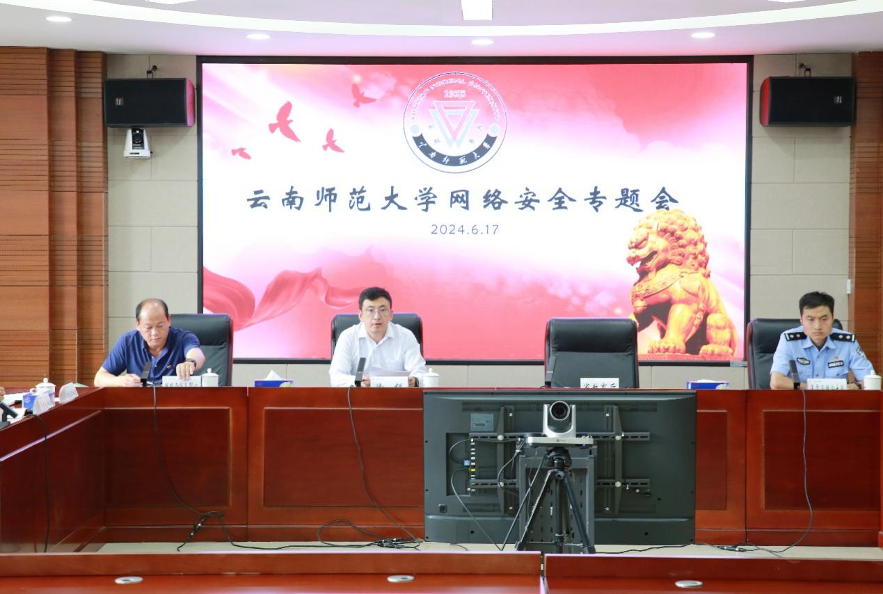 为深入落实网络安全主体责任,进一步加强fun88官网网络安全管理,6月17日,fun88官网召开网络安全专题工作会,会议由副校长徐锐主持,并邀请呈贡区网安大队海连山警官和云南省电教馆副馆长吴欣桓指导工作。学校各部门、各学院(学部)主管信息化的负责人,信息管理员参加会议。
