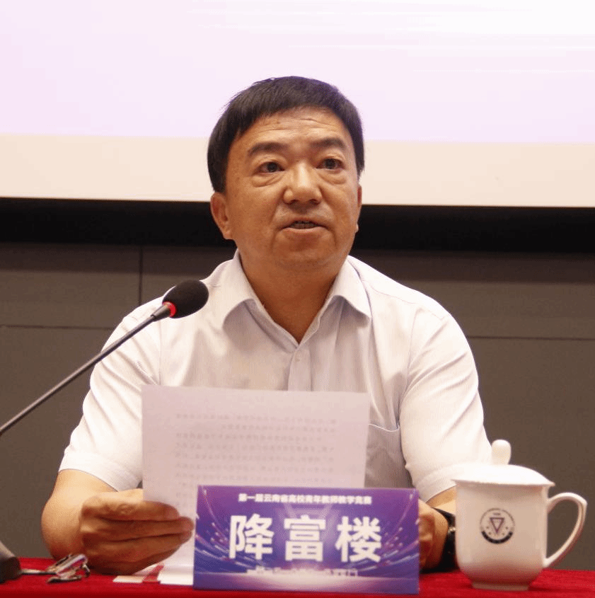 降富楼在致辞中指出,本次竞赛以“上好一门课”为竞赛理念,围绕立德树人根本任务,以加强师德师风建设、锤炼教学基本功为着力点,充分发挥教学竞赛在提高教师队伍素质中的示范引领作用;以推动云南省高等教育本科教学改革、助力课程思政和“四新”建设为目标,着力打造高校青年教师教学创新的标杆展示与交流平台,对提升广大青年教师教学水平和育人能力,加快建设高质量教育体系,促进云南高等教育事业高质量发展,落实云南省“3815”战略发展目标和教育高质量发展三年行动计划具有重要意义。他表示, 252名教师同台竞技,向大家展示了良好的精神面貌,创新的教学理念和精湛的教学功底,体现了广大教师对教学质量的不懈追求和对教育理想的默默坚守。他希望老师们以竞赛为新的起点,不忘立德树人初心,牢记为党育人、为国育才使命,坚持用习近平新时代中国特色社会主义思想武装头脑、铸魂育人,积极探索新时代教育教学方法,不断提升教书育人本领,乐教善教、奋进担当,努力培养德智体美劳全面发展的社会主义建设者和接班人,为云南建设教育强省、科技强省、人才强省作出新的更大贡献。