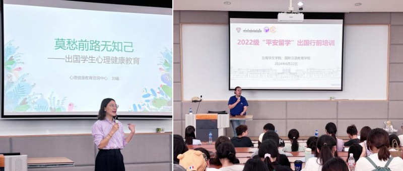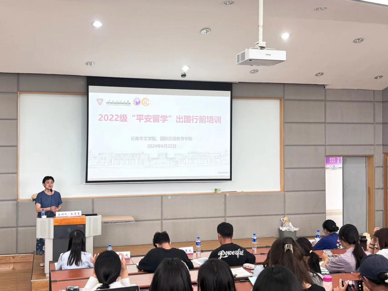根据专业和人才培养计划,云南华文学院2022级本科生将于2024至2025学年到泰国、越南、老挝和柬埔寨等国家进行为期一年的交换学习。为提高出国学生的安全意识和风险防范能力,确保学生平安留学,6月22日,学院举办了出国学生行前培训,从行前动员、海外安全风险及领事保护与协助、安全教育管理及学业指导、常见病的预防与治疗、心理健康教育等5个方面对即将出国的258名学生进行了专题培训。