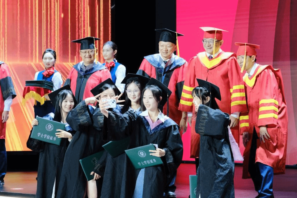 本次毕业典礼在各学院(学部)设分会场,同步视频直播,部分毕业生及家长在线上参加典礼。