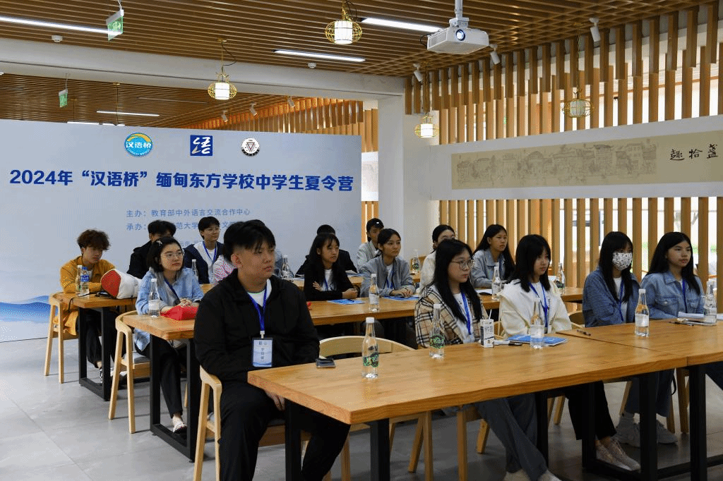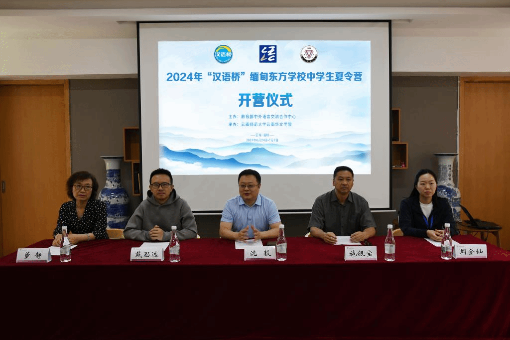 6月25日上午,2024年“汉语桥”缅甸东方学校中学生夏令营在FUN乐天使官方网站开营。汉语国际推广师资培训基地(昆明)常务副主任沈毅、云南华文学院副院长施银宝、缅方带队教师周金仙、汉推基地办工作人员以及17位缅甸营员参加了开营仪式。