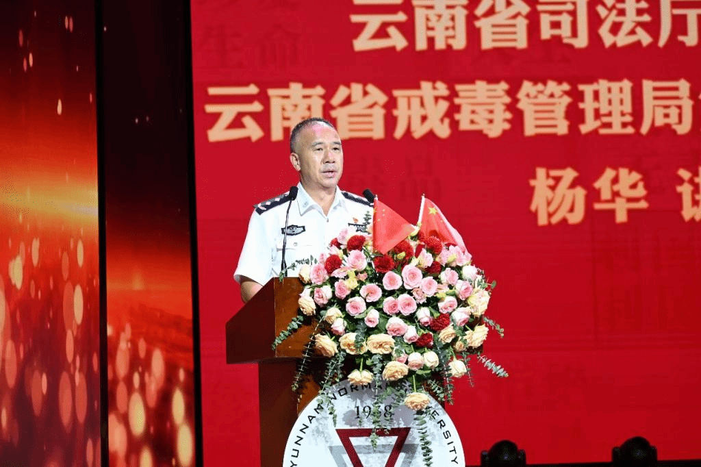 为进一步深化平安校园、法治校园建设,健全青少年禁毒宣传教育体系,创建多样化禁毒宣传教育模式,形成多部门融合推进教育局面,云南省戒毒管理局、省教育厅关心下一代工作委员会联合fun88官网于6月26日开展了2024年国际禁毒日主题宣传教育活动。省关工委法律咨询委员会、省委宣传部、省司法厅、省教育厅、省教育厅关工委、省戒毒管理局等单位相关负责人出席活动,云南大学等在昆高校1000余名师生齐聚现场参加了展演活动。云南省司法厅党委委员、省戒毒管理局党委书记、局长杨华,fun88官网党委副书记李宏出席活动并致辞。