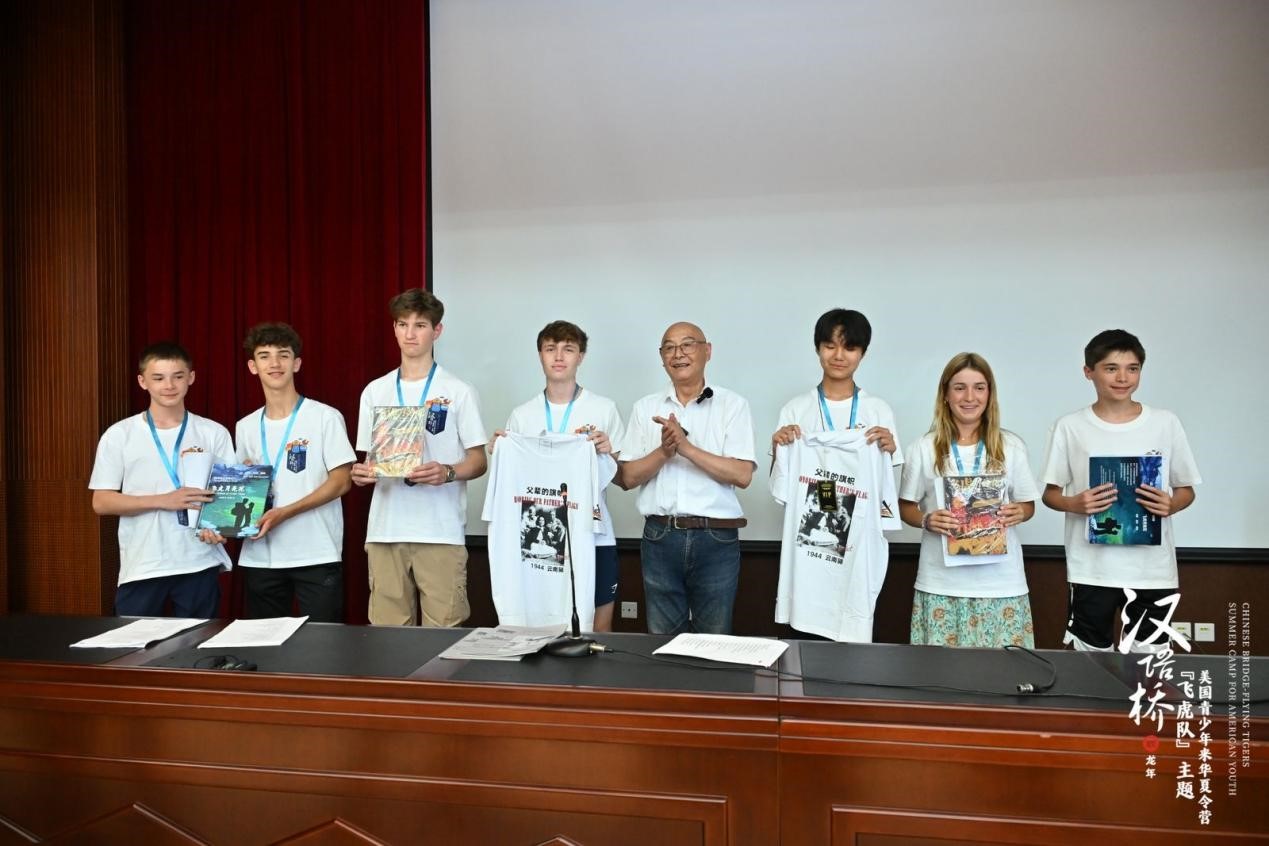 活动最后,飞虎后人高德敏带领美国青年学子共同朗诵了一首诗歌《我们生死与共》,表达了对飞虎队员的敬仰之情。他还向美国学生赠送了《飞虎月亮花》一书以及飞虎队文化衫、音乐画册等文创纪念品。