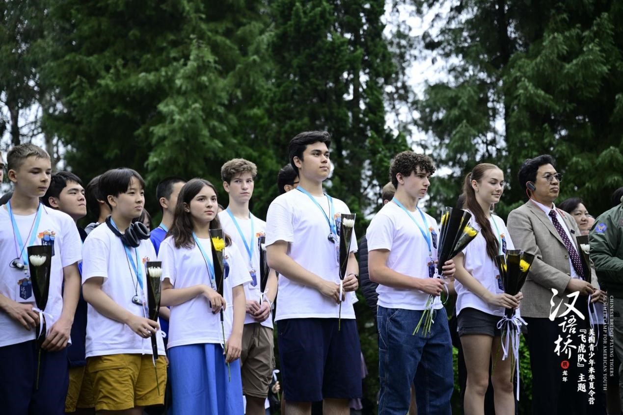 华裔同学杨斐参观完后激动地说:“之前我只在网上看过飞虎队的故事,现在我真的来到了这里,我被飞虎队的故事深深感动,也不由想起了爷爷。我的爷爷是一名中国军人,今天我不仅仅是给飞虎队献花,也是在给爷爷献花。我觉得他们都非常伟大,他们留下来的精神值得我们永远学习。”