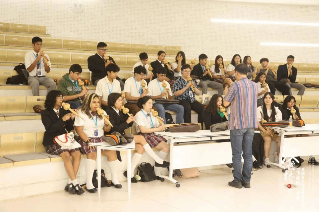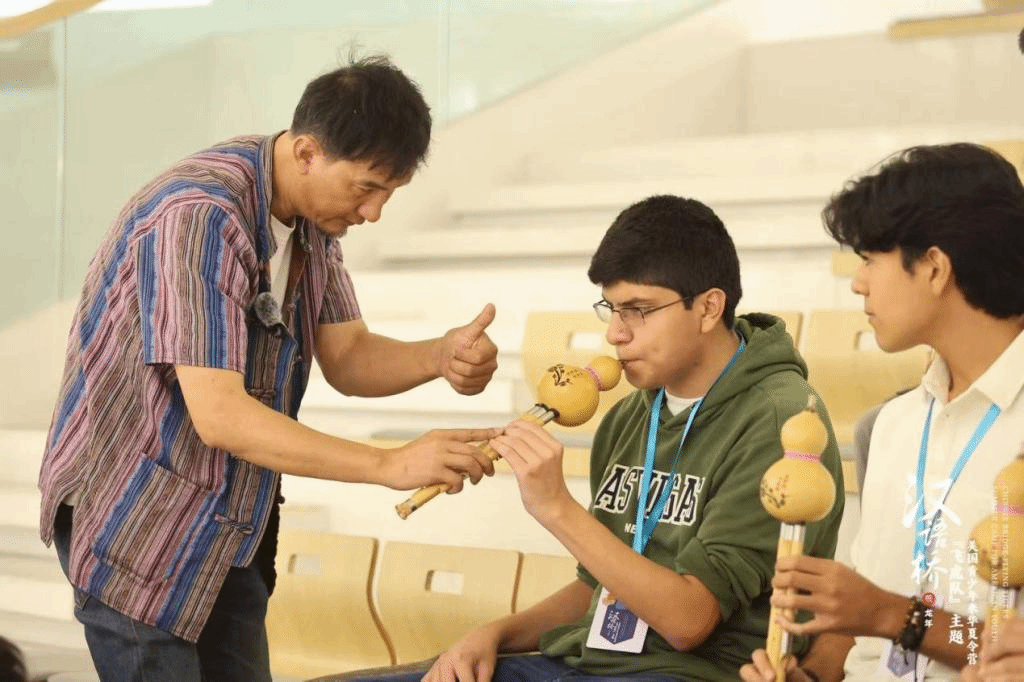 葫芦丝是云南少数民族乐器。在葫芦丝体验课上,杨健老师悠扬婉转的独奏,令大家深深沉醉。在杨老师的带领下,营员们不仅学会了一些简单的葫芦丝吹奏技巧,还领略了云南少数民族文化的魅力。Helena Villegas和Daniel Labya用葫芦丝合奏一曲《欢乐颂》,将活动现场气氛推向高潮。