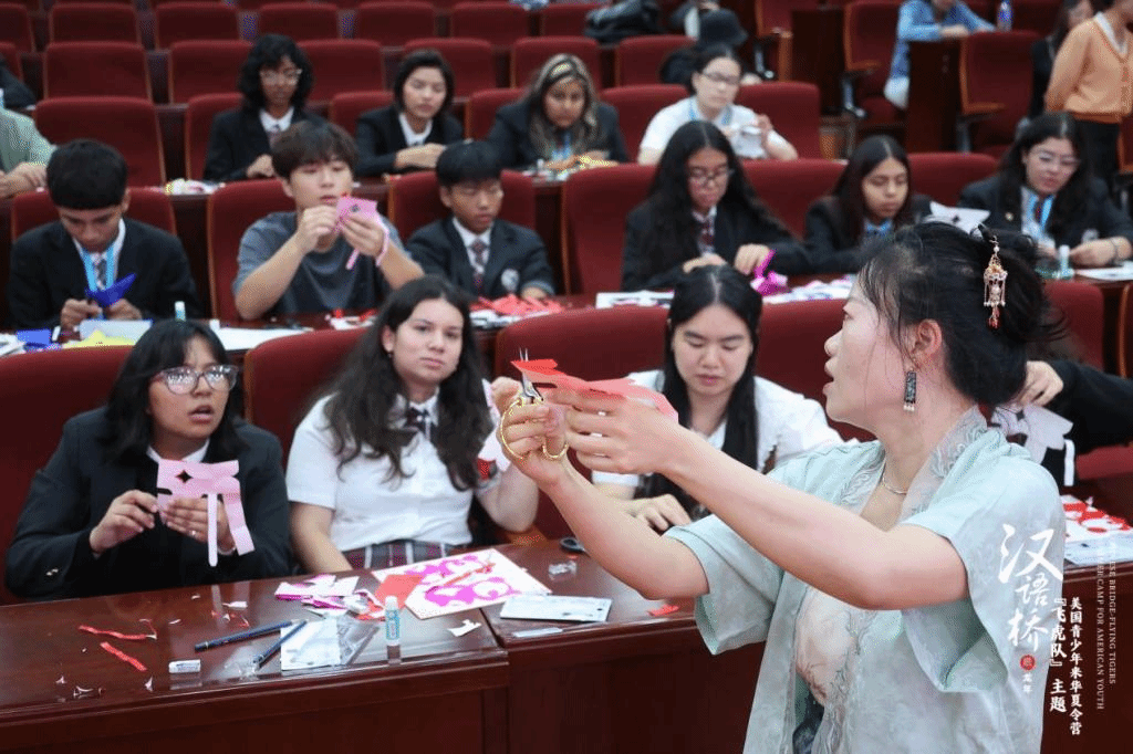 7月2日,参加汉语桥“飞虎队”主题夏令营的美国青少年们走进FUN乐天使官方网站,上了一堂生动的中国传统文化体验课。