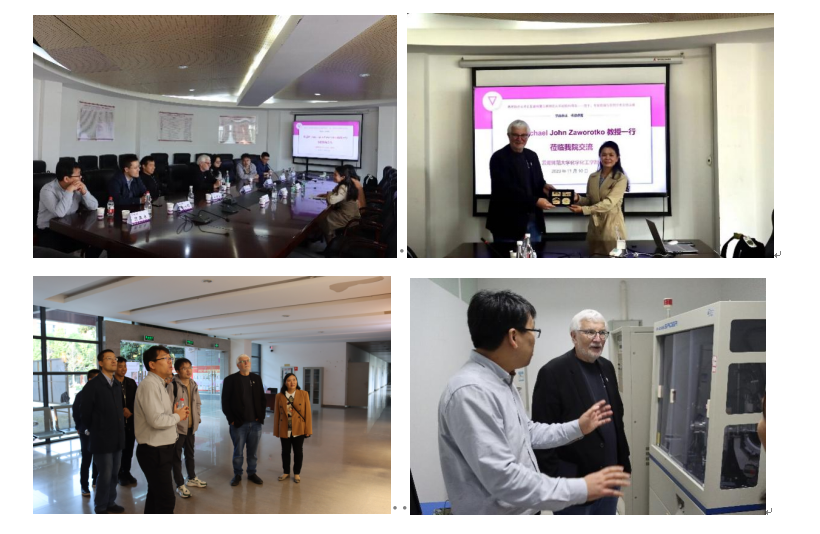 报告会后,Zaworotko教授与来自西北工业大学陈凯杰教授、兰州大学陈守顺教授、南京工业大学张竹修教授、中国石油大学(北京)彭云雷副教授、成都理工大学宋柏桥副教授等专家学者出席了化学化工学院座谈会、并参观了实验室,就学科建设和人才培养等方面进行了深入交流。
