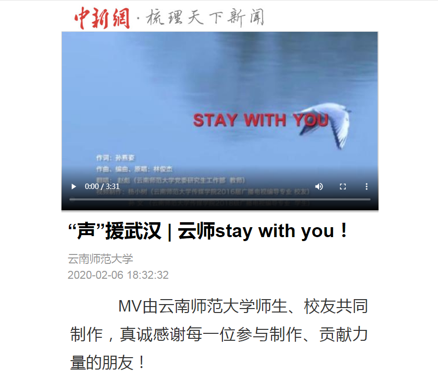 上一条:云南网 2020-02-06 “声”援中国 云师版《stay with you》为“疫战”加油! 下一条:光明日报 2020-01-23 “教育同国家前途命运紧密相连”——四校专家谈西南联大的精神与价值