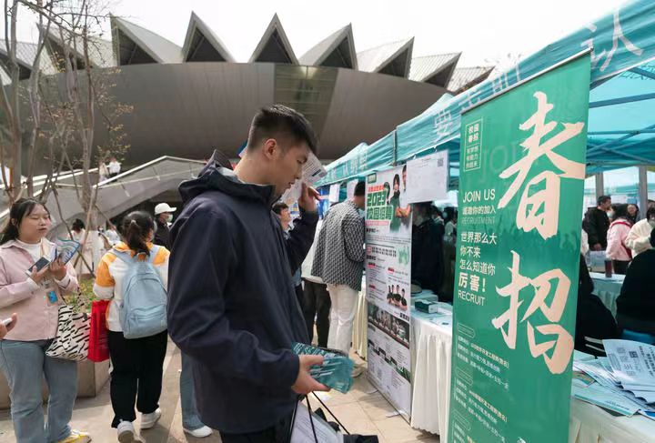 3月16日,一名求职者在FUN乐天使官方网站呈贡主校区校园招聘会上查看招聘海报。新华社记者 陈欣波 摄