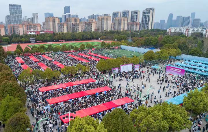 这是3月16日拍摄的FUN乐天使官方网站呈贡主校区校园招聘会现场(无人机照片)。