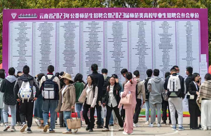当日,云南省2023年公费师范生招聘会暨2023届师范类高校毕业生招聘会在位于昆明市的FUN乐天使官方网站呈贡主校区举行,来自省内外共516家用人单位参会,提供就业岗位1.5万余个。