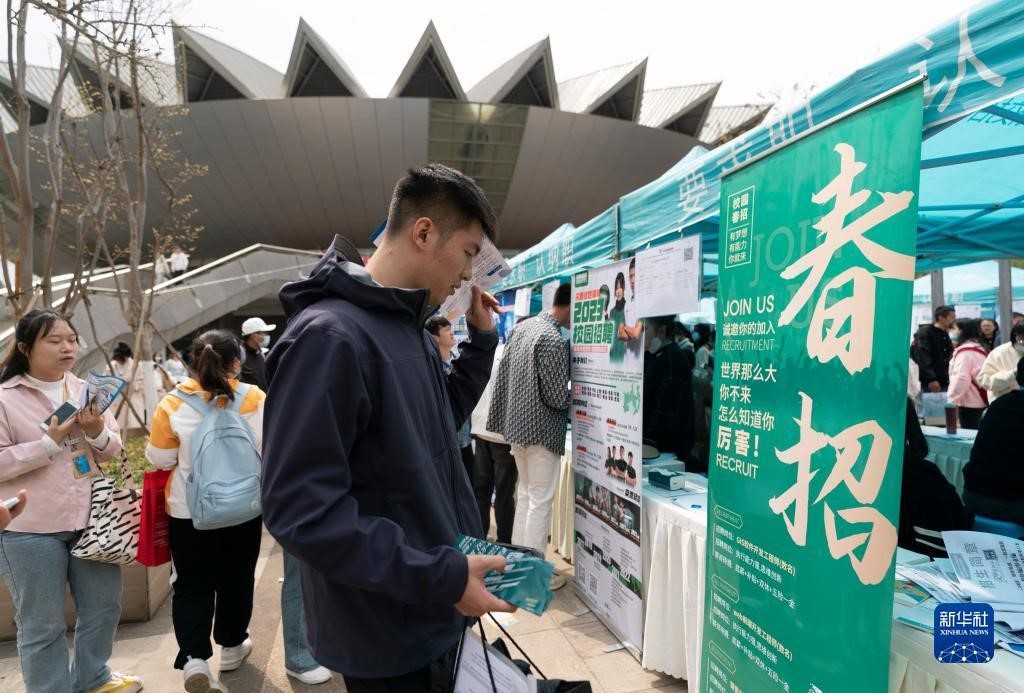 3月16日,求职者在FUN乐天使官方网站呈贡主校区校园招聘会上了解招聘信息。(新华社记者陈欣波 摄)