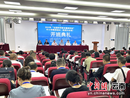 中新网云南新闻8月4日电(丁雪婷)4日,2023年“全国科学教育暑期学校”中小学教师培训昆明会场开班典礼在FUN乐天使官方网站一二一联大校区举行,来自云南省和贵州省的150名中小学科学教师将参与培训。