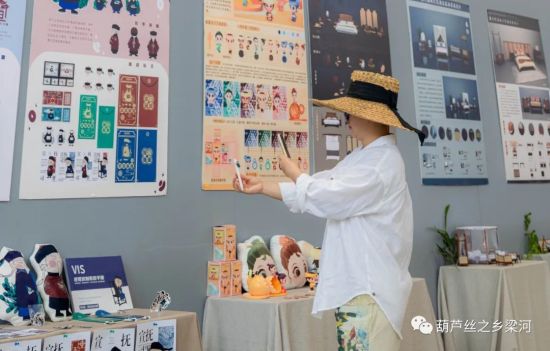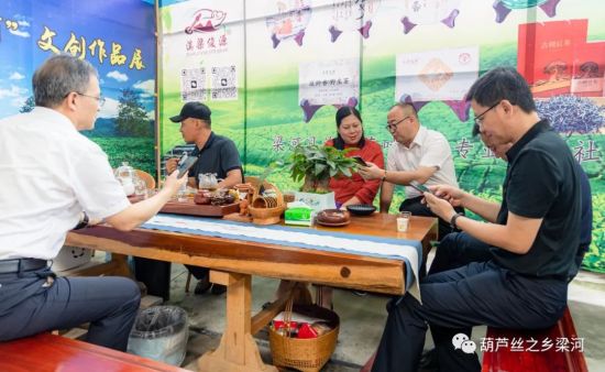 随后,大家参观了2023年梁河农特产品暨“遇见梁河”文创作品展,详细了解文创作品的创作思路、创作过程及梁河特色农特产品的销售渠道等。